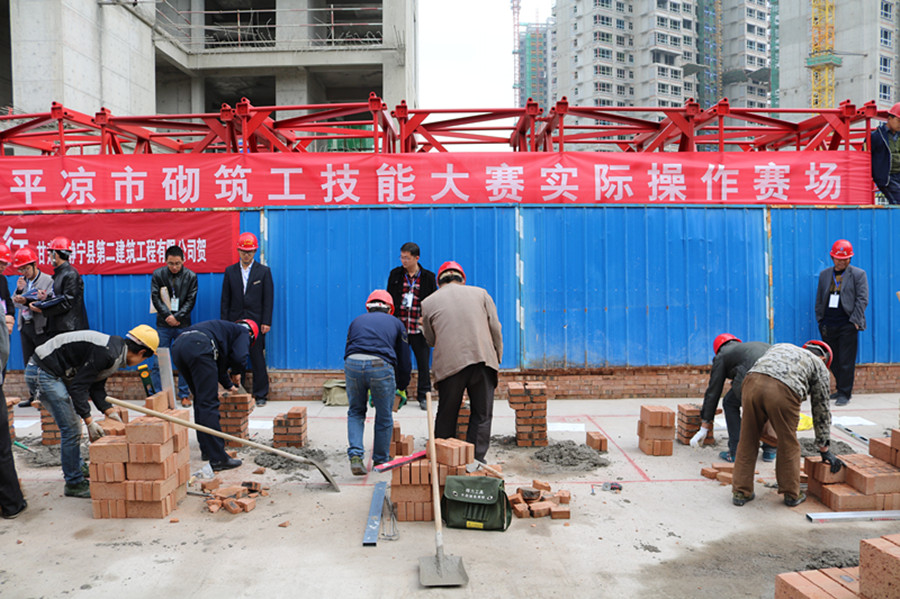 10月12日,由平凉市十万职工技能大练兵活动组委会主办,市总工会、市住建局承办的全市砌筑工、钢筋工职工职业技能大赛在新北嘉园(新民北路东片区城市棚户区改造项目)项目施工现场举行。