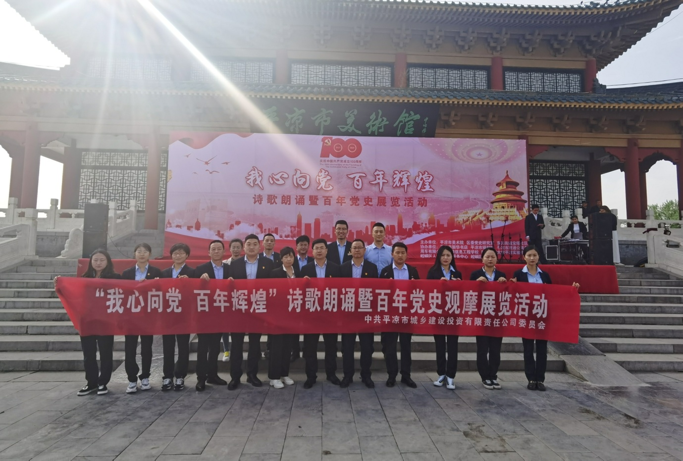 为庆祝中国共产党建党100周年,回顾党的光辉历程,讴歌党的丰功伟绩,引导平凉城乡投(惠民)公司党员、职工深刻了解党的光辉岁月、感悟党的初心使命、领会党的创新理论、传承党的红色基因。5月12日,市城乡投资公司党委受东关街道宝塔社区、平凉市美术馆、区委党史研究室联合邀请,组织机关第一党支部、机关第二党支部、惠通公司党支部、物业公司党支部、文化传媒公司党支部、绿化公司党支部、供应链管理公司党支部共同开展“我心向党 百年辉煌”诗歌朗诵暨百年党史展览活动。