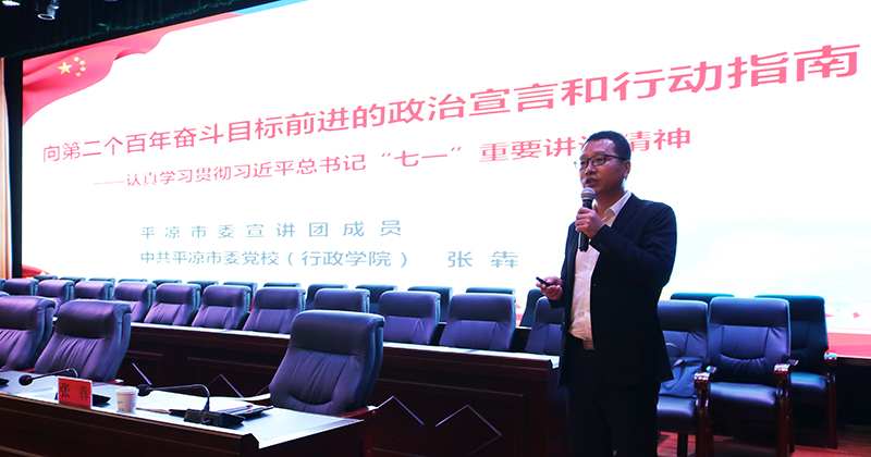 下午,邀请市委党校(行政学院)办公室副主任、党史党建专业副教授张犇作了题为《向第二个百年奋斗目标前进的政治宣言和行动指南》的宣讲辅导。张犇从充分认识“七一”重要讲话的重大意义、准确把握“七一”重要讲话的丰富内涵、全力推动“七一”重要讲话精神落地生根三个方面,对习近平总书记“七一”重要讲话精神进行了详细解读。