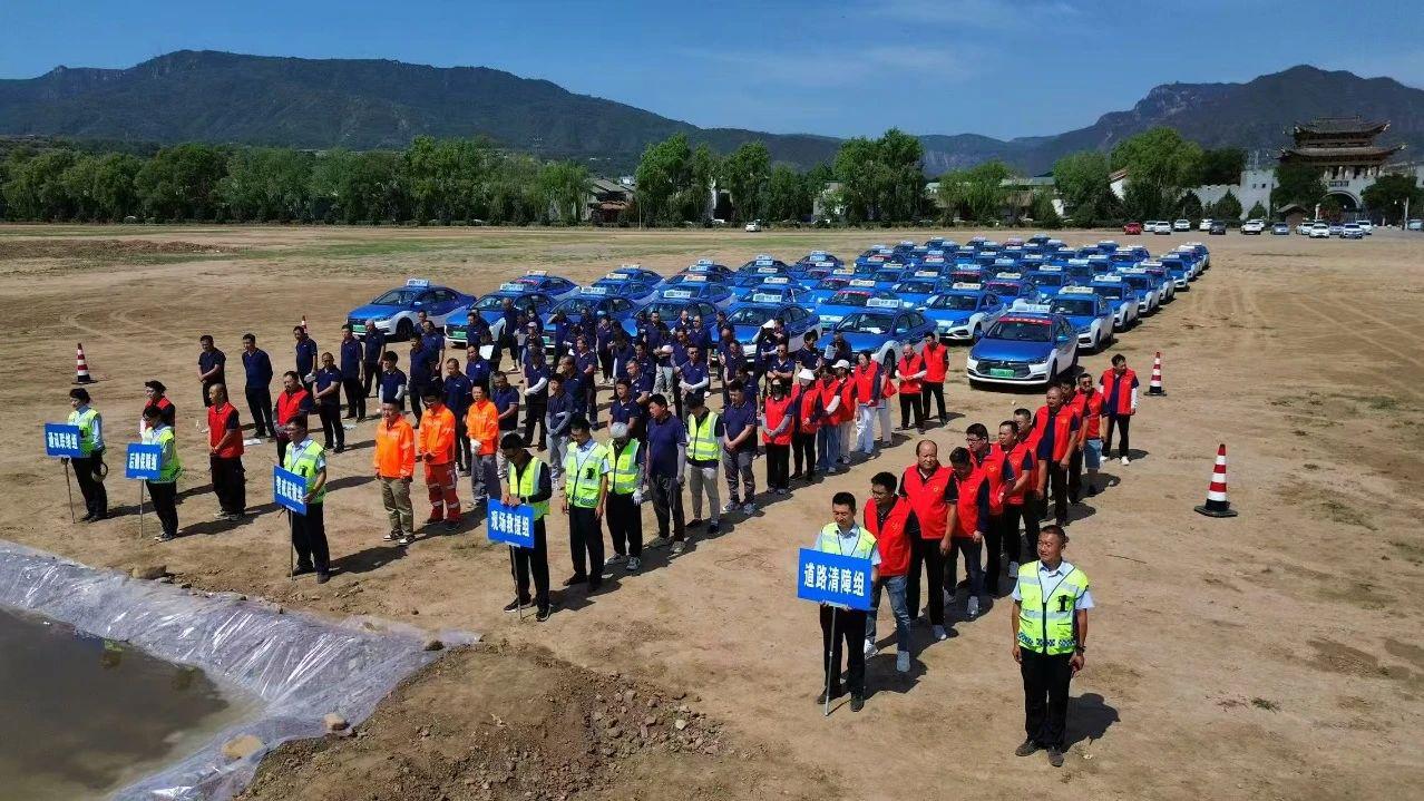6月13日,畅安出租车公司在崆峒古镇开展防汛救援专项演练,检验应急体系实战能力。