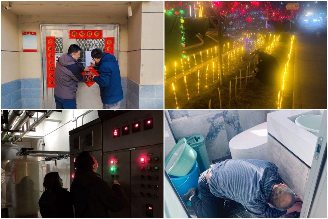 春节期间人员密集流动,各服务中心严格执行24小时值班制度,保安人员加密巡逻频次,重点排查关键区域、登记来访人车;消防控制室全天候值守,物业管理人员全覆盖巡查消防设施、电气线路等重点部位,及时消除安全隐患。针对节日期间水电气用量骤增的情况,公司提前制定应急预案、备足抢修物资,维修中心24小时在岗化身"维修卫士",做到"报修即响应、到场即处理",全力保障业主生活顺畅。保洁人员主动加码工作量,天未亮便开始清扫小区主次干道、楼道走廊等区域,定时消杀电梯轿厢与垃圾分类点,确保垃圾清运日产日清,以干净整洁的环境为业主增添浓浓"年味"。