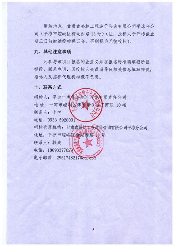 招标人:平凉市惠民房地产开发有限责任公司